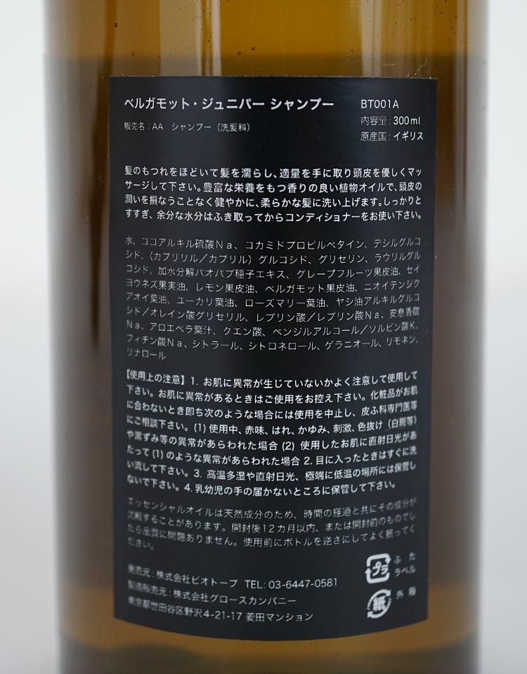 水、ココアルキル硫酸Na、コカミドプロピルベタイン、デシルグルコシド、(カプリリル/カプリル)グルコシド、グリセリン、ラウリルグルコシド、加水分解バオバブ種子エキス、グレープフルーツ果皮油、セイヨウネズ果実油、レモン果皮油、ベルガモット果皮油、ニオイテンジクアオイ葉油、ユーカリ葉油、ローズマリー葉油、ヤシ油アルキルグルコシド/オレイン酸グリセリル、レブリン酸/レブリン酸Na、安息香酸Na、アロエベラ葉汁、クエン酸、ベンジルアルコール/ソルビン酸K、フィチン酸Na、シトラール、シトロネロール、ゲラニオール、リモネン、リナロール