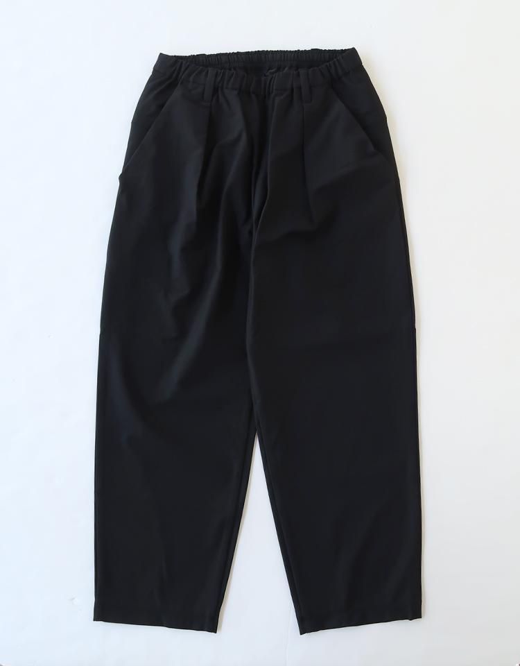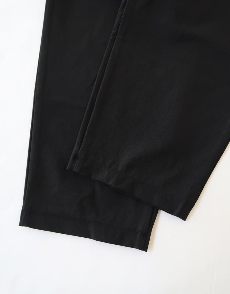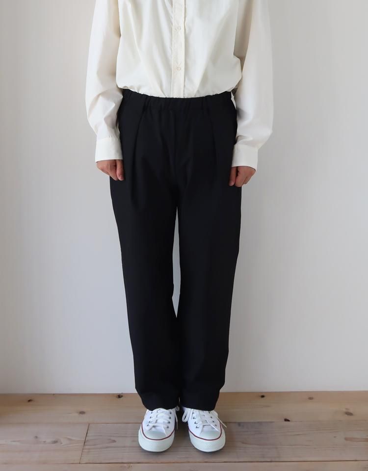 ヒップやウエストまわりがスッキリし、ワタリから裾にかけてストンと落ちるような上品なボリューム感をもったワイドストレートのウォレットパンツオフィスホテル。