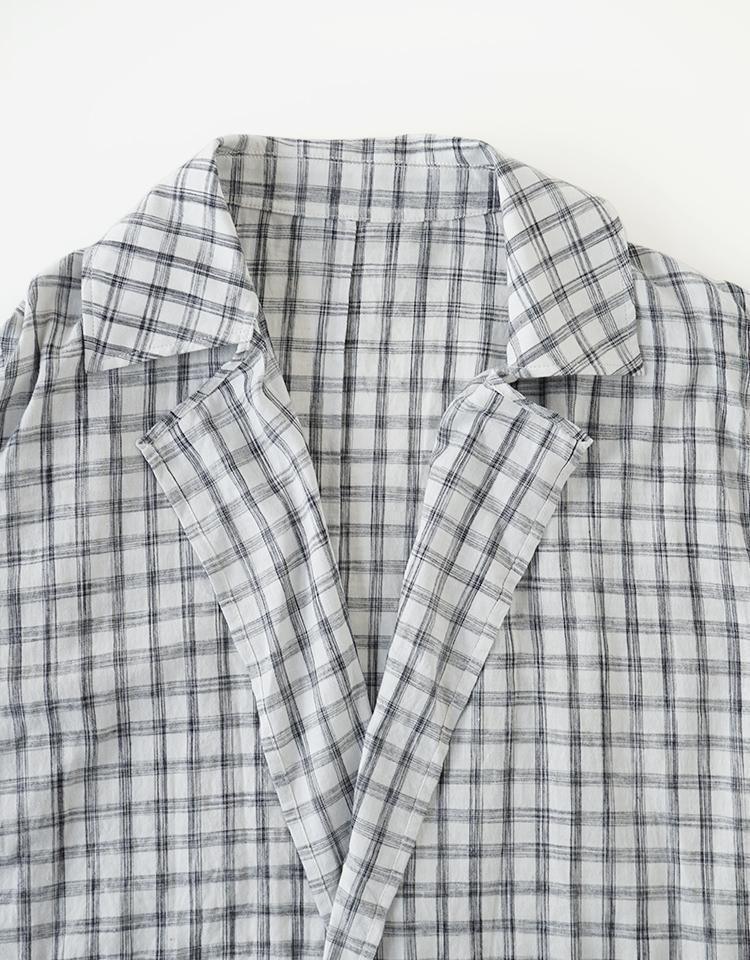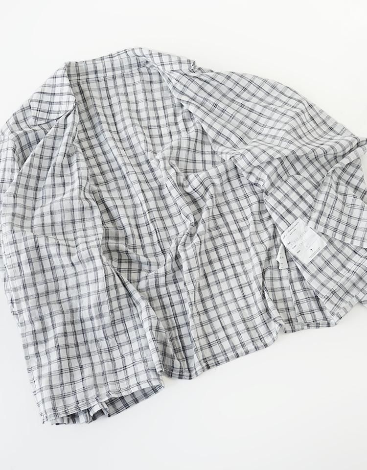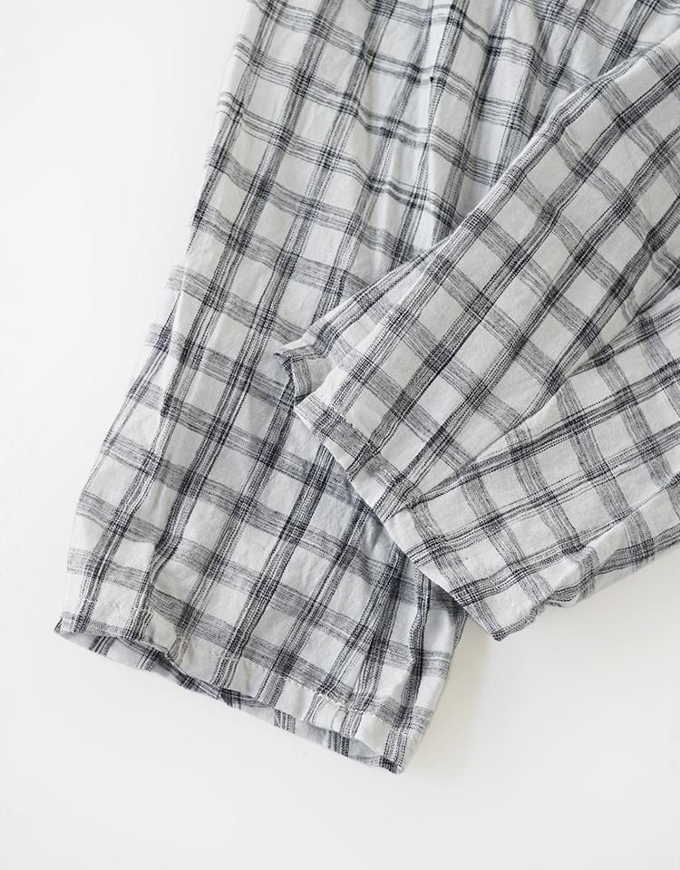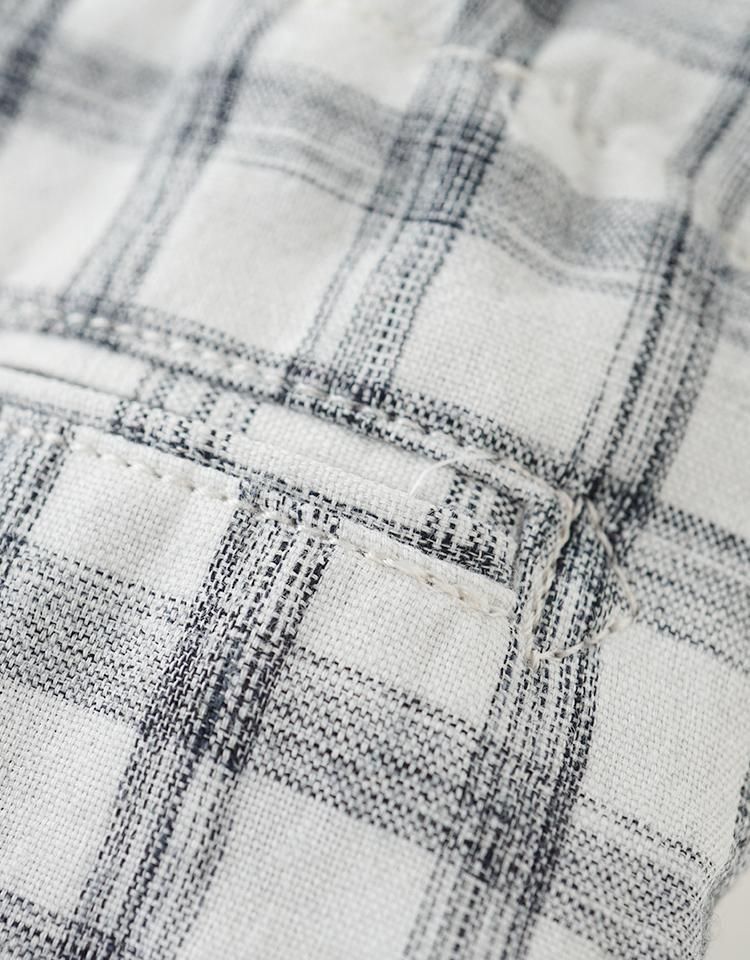 生地は、手紡ぎ・手織りによる独特なチェックのかすれ具合が特徴的な、インドの KHADI COTTON を採用しています。