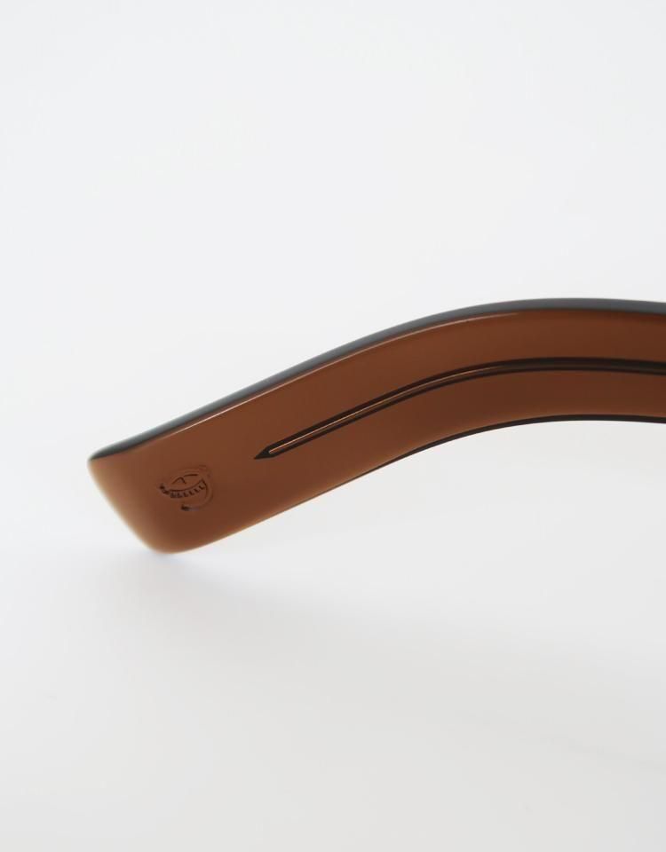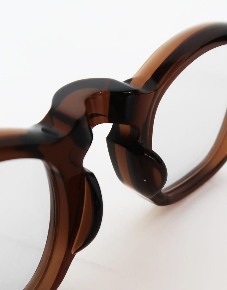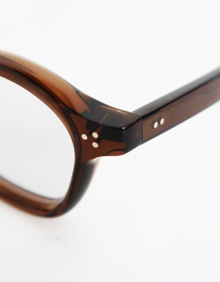 guépardはモダナイズする箇所がサイズくらいしかないフレンチヴィンテージの高いデザイン性や本質を理解し、敬意を払い表現したコレクションだが、フレームは比較的手が届き易いアセテートを使い、ヴィンテージへのファーストステップに最適な価格とデザインにした。フレームデザインや、タグ、油紙、レンズ(当時のレンズはマルチコートの技術がなくレンズ表面が反射していたので、当時の再現性を高めるためにguépardで特注をした裏面のみマルチコートのフラットレンズを使用。反射防止のコーティングがない為、表面が反射しやすい)の設計は当時のフレンチヴィンテージのバックグラウンドを知らないと表現出来ない要素であり、実際にヴィンテージを所有している人たちにも響く仕様にしている。