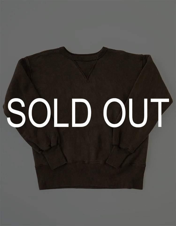 人工素材が広く普及する1950 年代より以前のアメリカンスポーツウェアの原点から生まれたスェット シャツ。Lot.601 Tee Shirt と同様に直接的な裁断に、平面的なかたち。表裏の首元にあるV ガゼッ トと呼ばれる汗止めのディテールなどの現代では忘れ去らせたものづくりの背景が再構築することで 理解できる。丸胴の裏毛は和歌山にある吊り編み機で作成。USA コットンを使用することで、ドライ な質感を持つ独特な風合いの生地になった。大正時代に日本に入ってきた吊り編み機は、現在、世 界で唯一、和歌山県で稼働している。1時間に1メートルしか編むことができないため、とても非効 率ではあるが、ゆっくり時間をかけることで空気も一緒に編み込んだような、程よいムラ感のある独 特な風合いの生地に仕上がる。 MUD DYED BROWN とSUMI DYED BLACK は日本の伝統染色技法「泥染め」と「墨染め」を用い、一枚 一枚丁寧に染められる。ひとつとして同じものがなく、唯一無二の表情が楽しめる。 HAND DRAWN SUMI は京都の唐紙職人であるかみ添による墨流しの作品に着想を得て、墨を手描きす ることにより友禅の職人が使用する刷毛の流れの微妙なニュアンスを表現した。手描きである為、 一枚一枚刷毛の流れや色の濃淡が微妙に異なり、一つとして同じ柄がないスウェットシャツに仕上 がった。