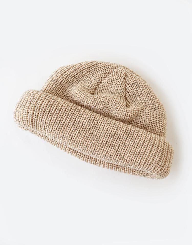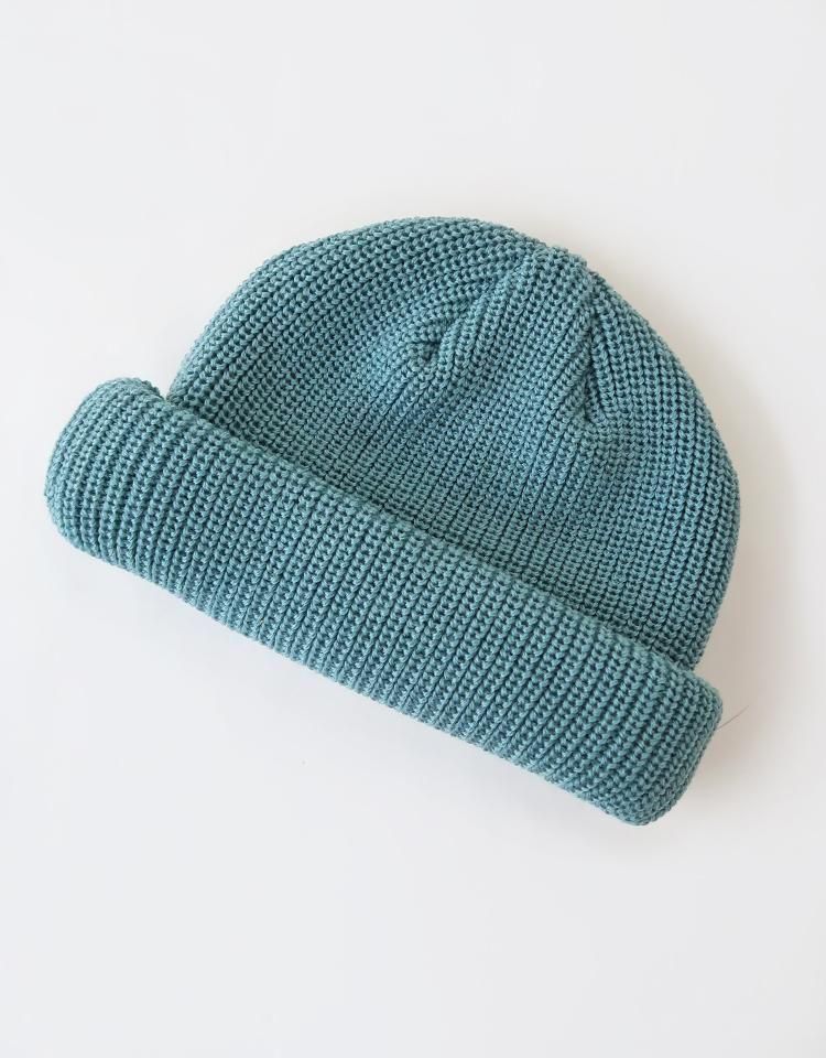 ウールアクリル素材のニットキャップ。畦編みの立体的なボリューム感が特徴で、折り返し方で被りの深さを変えられるダブル仕様になります。