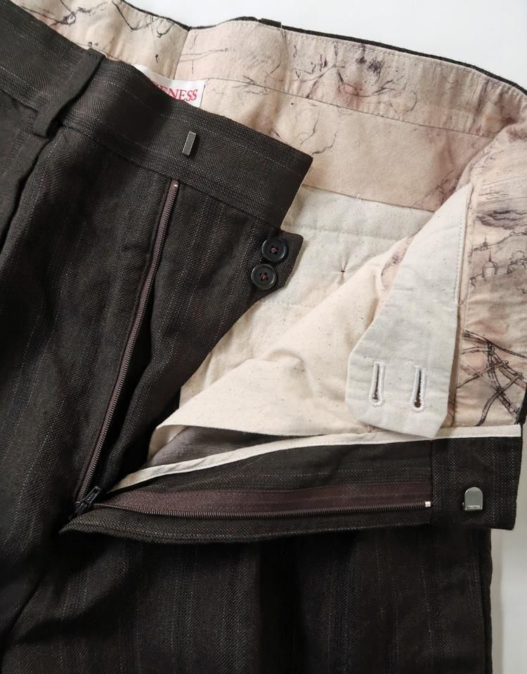 S.SCHENKER ウールリネンストライプフライングVトラウザー