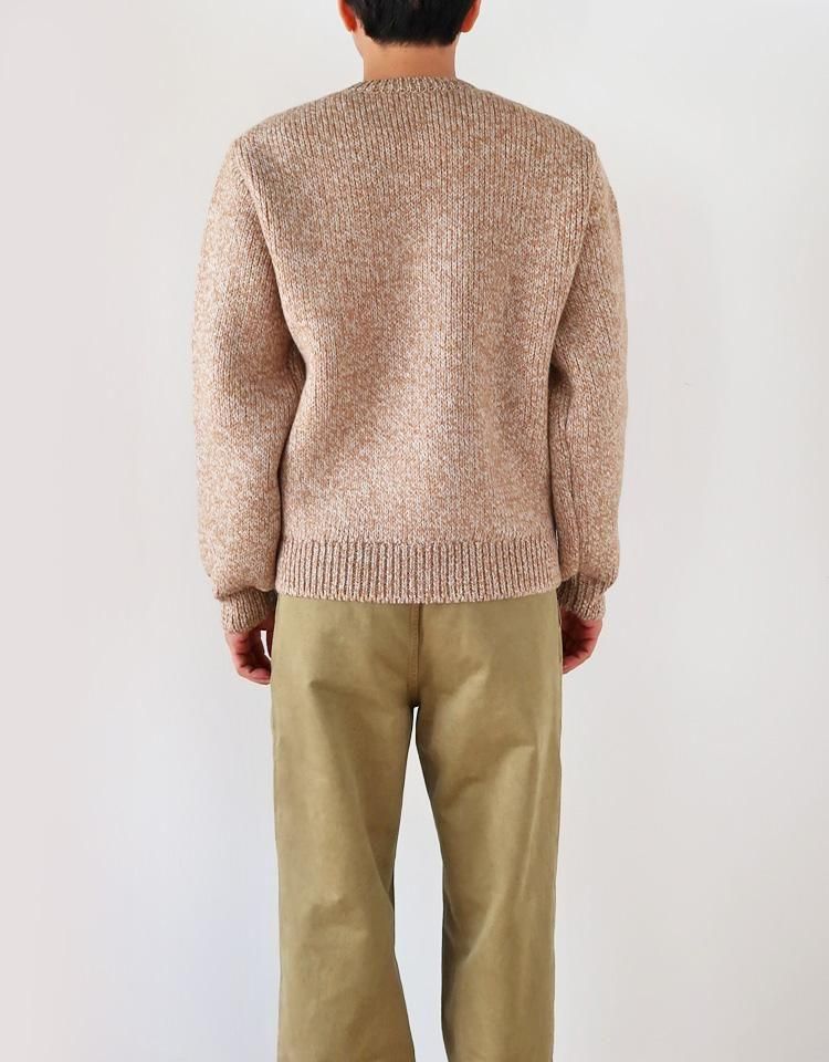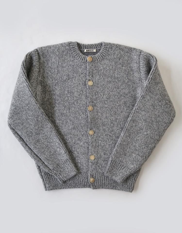 DOUBLE-FACED WOOL ALPACA LOW GAUGE KNIT CREW-NECK CARDIGAN
