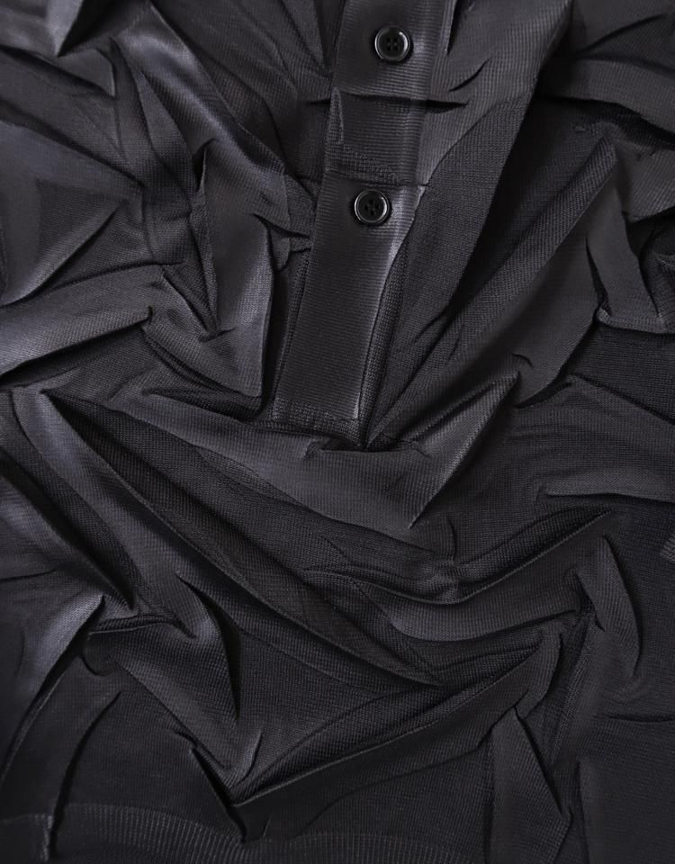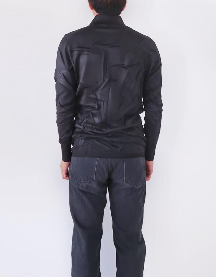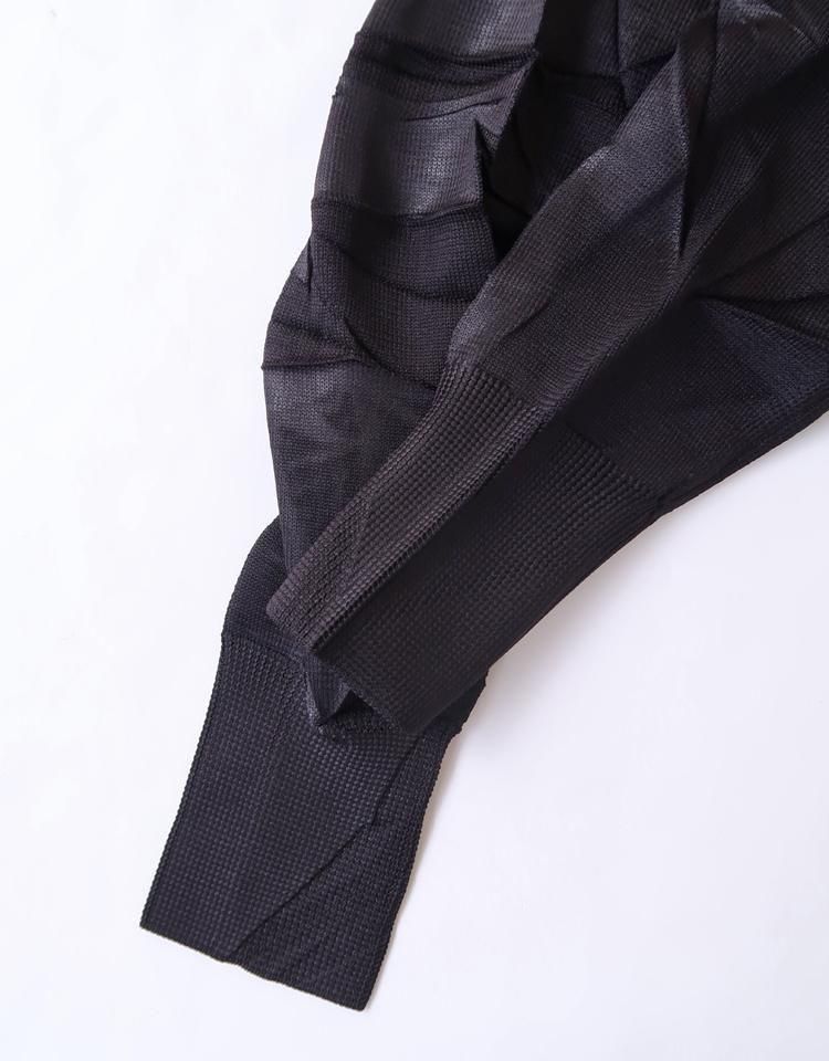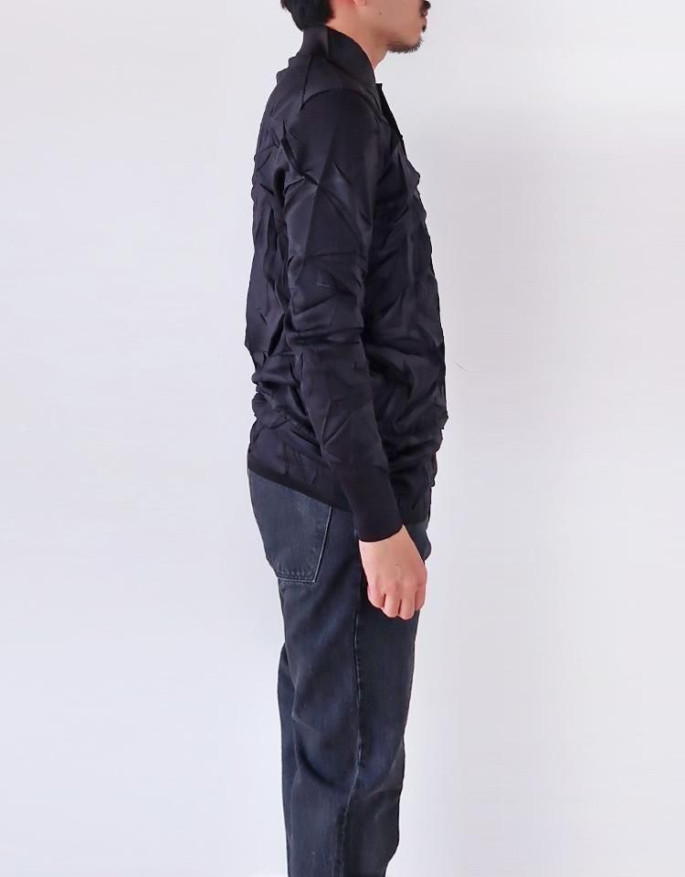 製品の状態で一枚ずつプレス台の上でしわのデザインを作るためのクラッシャーエンボス加工(しわを作って熱プレス)をおこなっているので、しわの入り方やかかり方に個体差があります。あらかじめご了承ください。