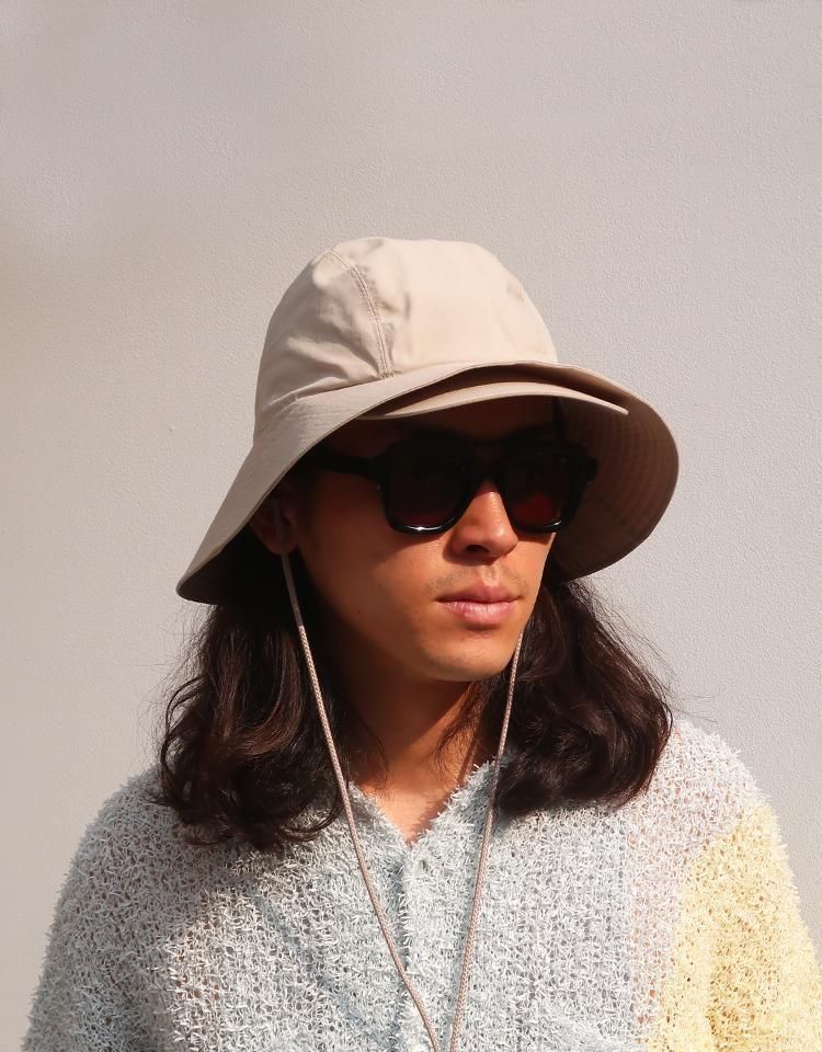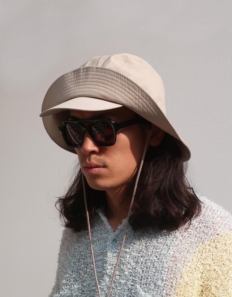 バイザーがつくデザインがユニークな、高機能素材ハット。オーガニックコットン×ポリエステルウェザー素材の生地はソフトかつ軽やかなストレッチ性のある形態回復性に優れた【ソロテックス】で、撥水性もあります。フロントを狭くしたブリムの下にバイザーをレイヤードしています。
